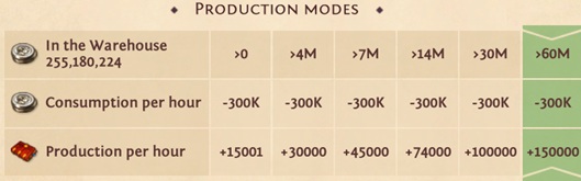 Note that the production per hour that is shown in the building (see screenshot above) is only the base rate. It does not include the bonuses from the tile where it is placed on or clan researches that improve the production.